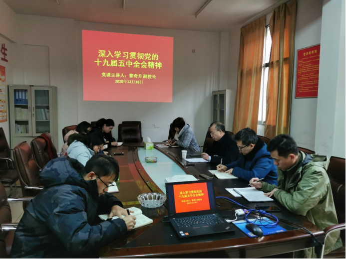 12月18日,校党委委员、副校长黎奇升为财务处党员作了题为“深入学习贯彻党的十九届五中全会精神”的专题党课,党课由财务处党支部书记蒋辉主持,财务处全体党员参加。