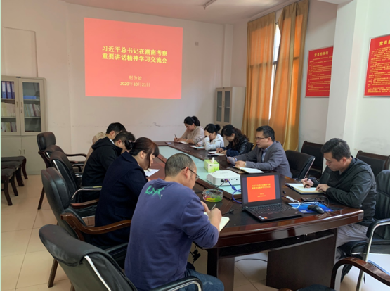 10月21日,财务处党支部在创业园214会议室举行习近平总书记考察湖南重要讲话精神学习交流会,财务处党支部10位党员全部参加,交流会由支部书记蒋辉同志主持。