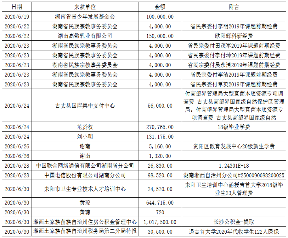 现将近期收到的校外拨(汇)款公布如下,请相关经费负责人持项目申请书或外单位拨款文件(或合同)、项目预算表等有效材料到经费主管部门办理经费确认及预算指标下达手续。