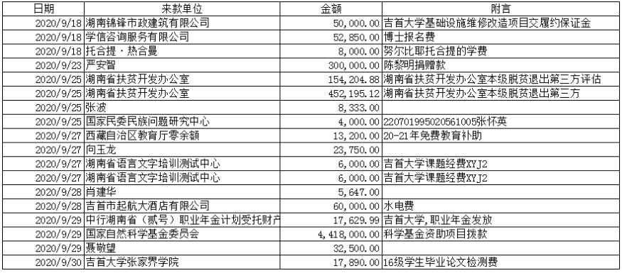 现将近期收到的校外拨(汇)款公布如下,请相关经费负责人持项目申请书或外单位拨款文件(或合同)、项目预算表等有效材料到经费主管部门办理经费确认及预算指标下达手续。
