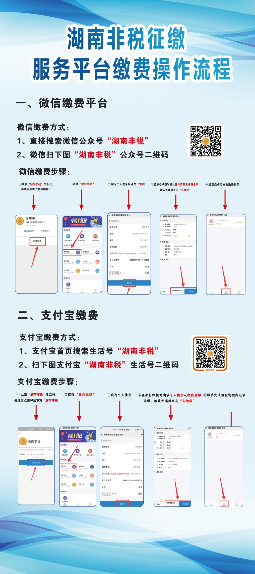 注:生源地助学贷款仅用于抵扣学费、住宿费、空调使用维护费,其他代收费用及学杂费不足抵交的由学生自行通过“湖南非税”公众号进行缴纳,操作流程见附件。