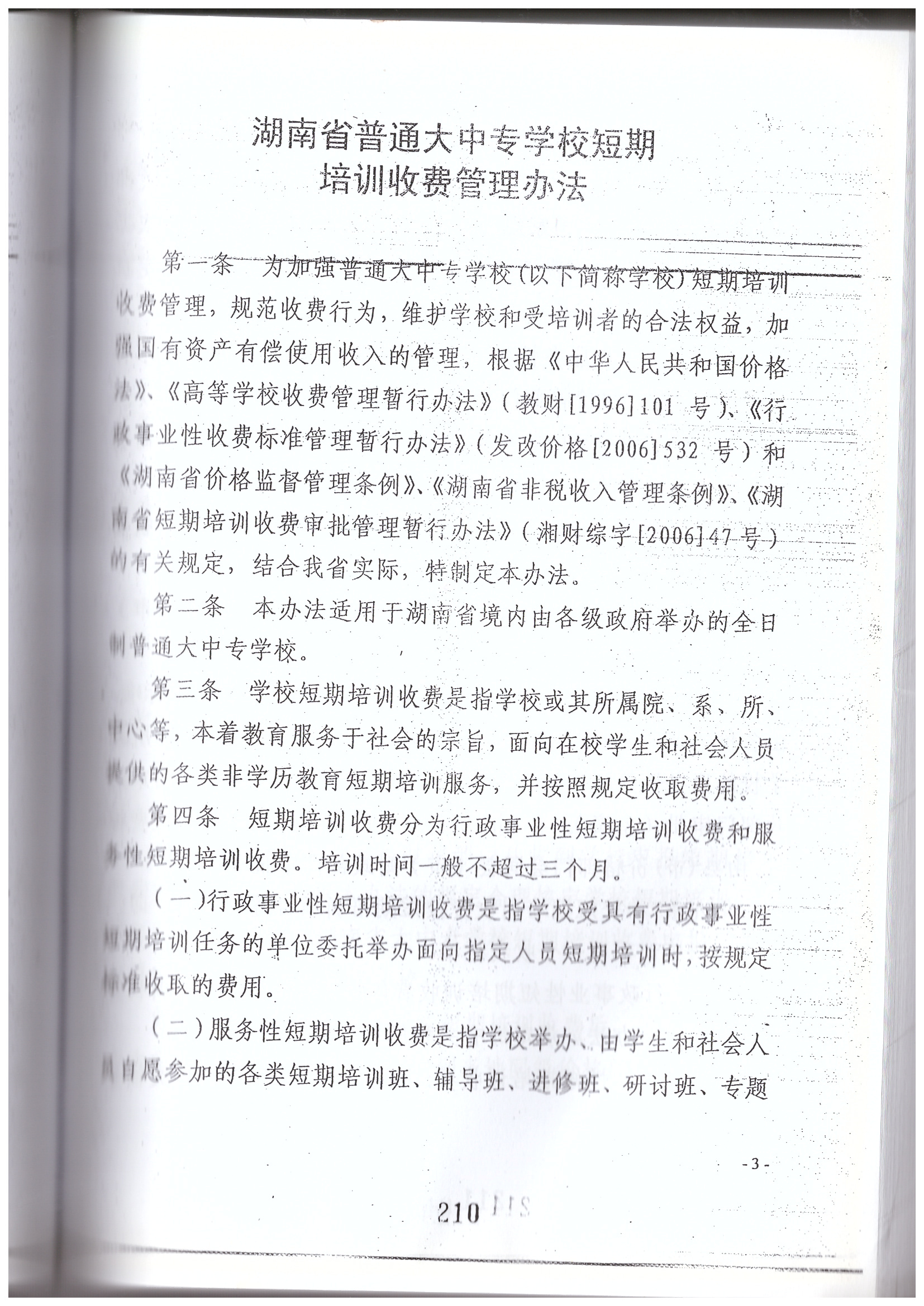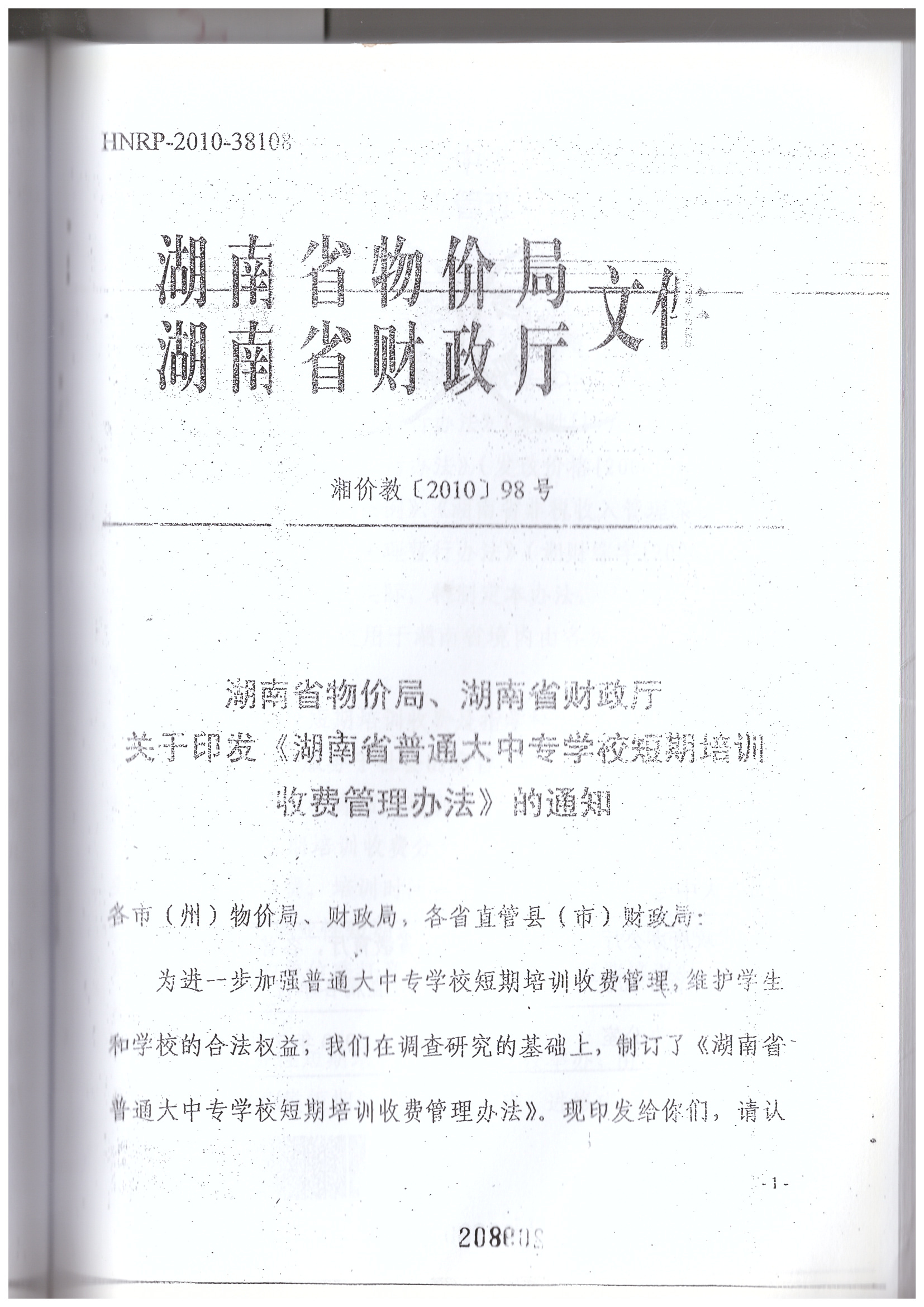 湖南省物价局、湖南省财政厅关于印发《湖南省普通大中专学校短期培训收费管理办法》的通知
