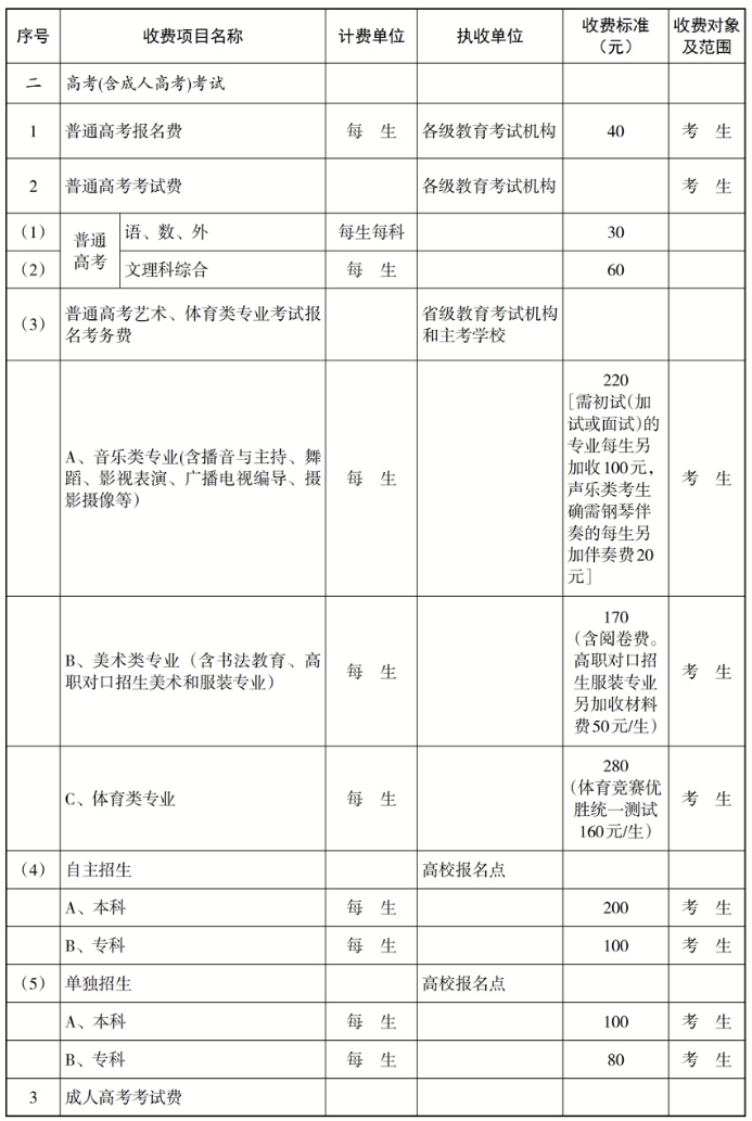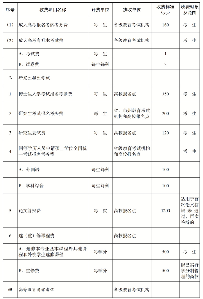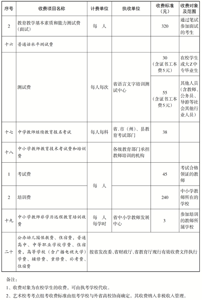 一、全省教育系统行政事业性收费一律按本次公布的项目和标准执行(详见附表)。