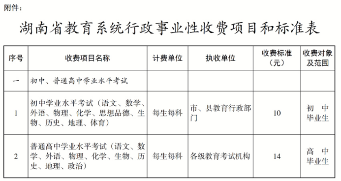 附件:湖南省教育系统行政事业性收费项目和标准表