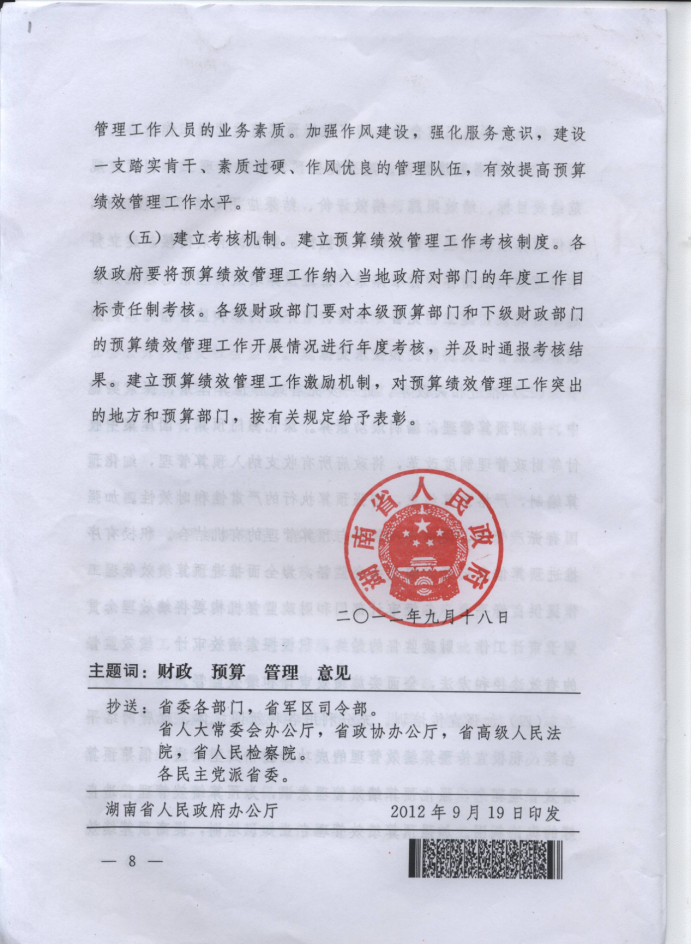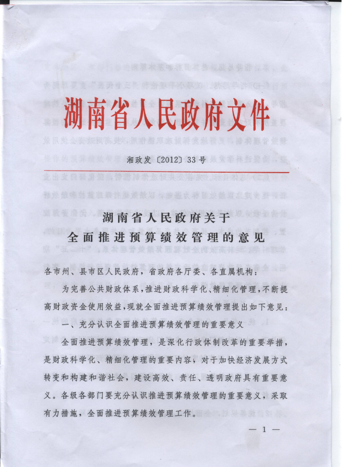 湖南省人民政府关于全面推进预算绩效管理的意见