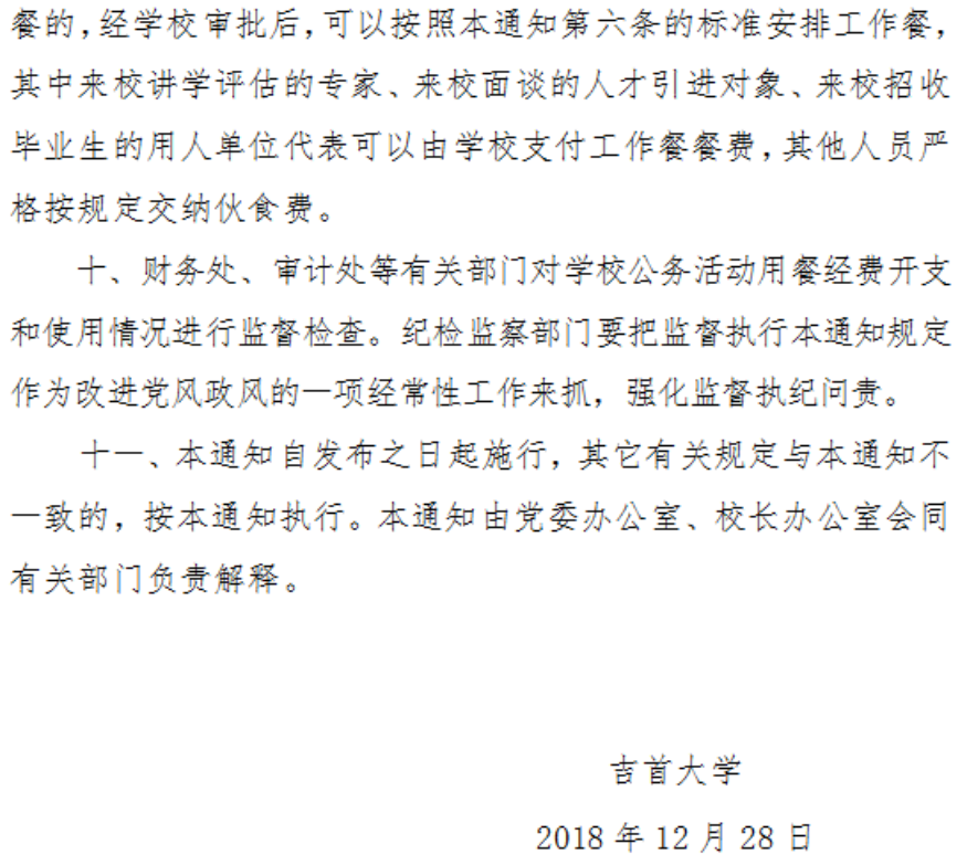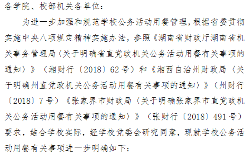 吉大发【2018】60号 吉首大学关于明确学校公务活动用餐有关事项的通知